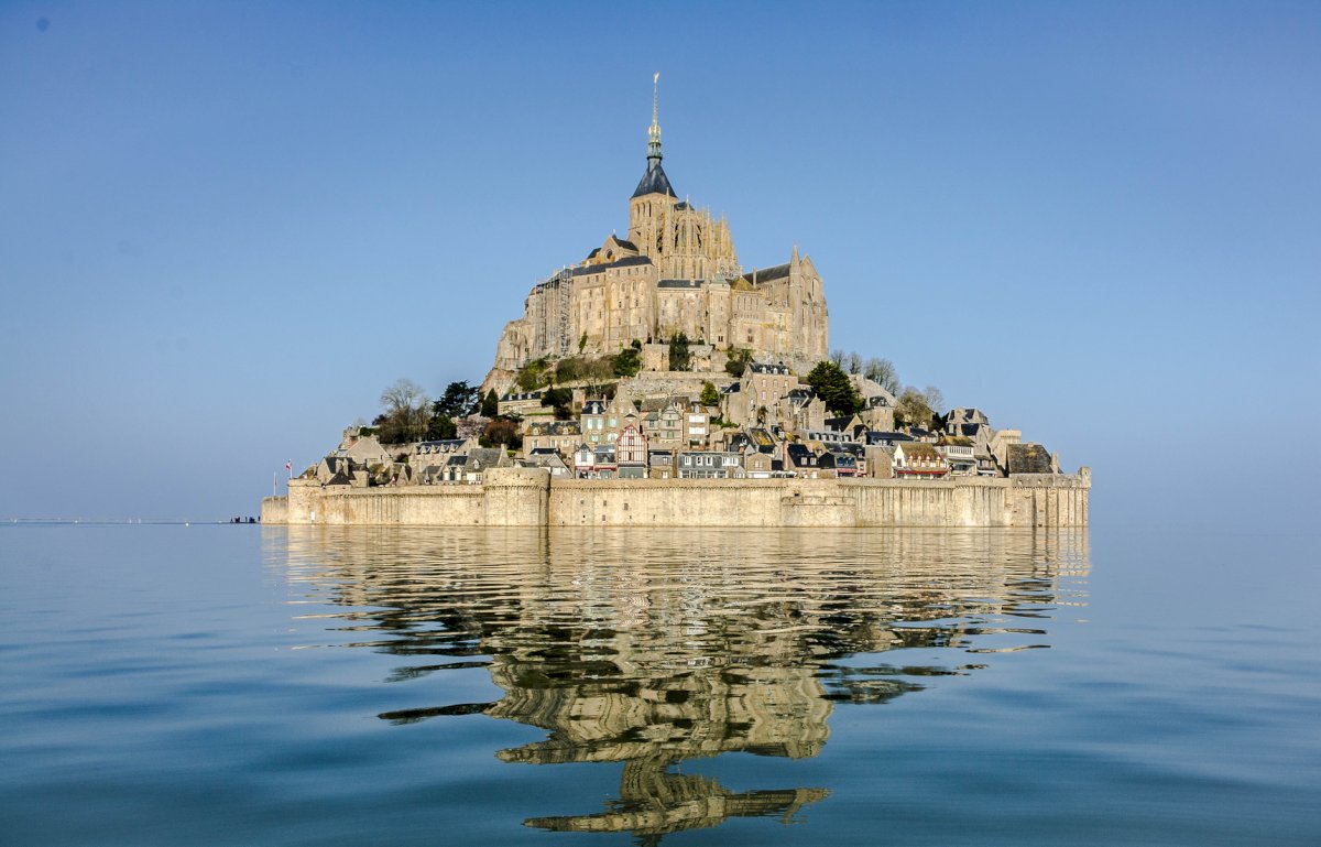 It is located about 1 kilometer from the shore and sits in a bay that sees some of the biggest tides in Europe. A few years ago, it was linked to the mainland by a bridge that gets flooded during high tides a few times a year only.